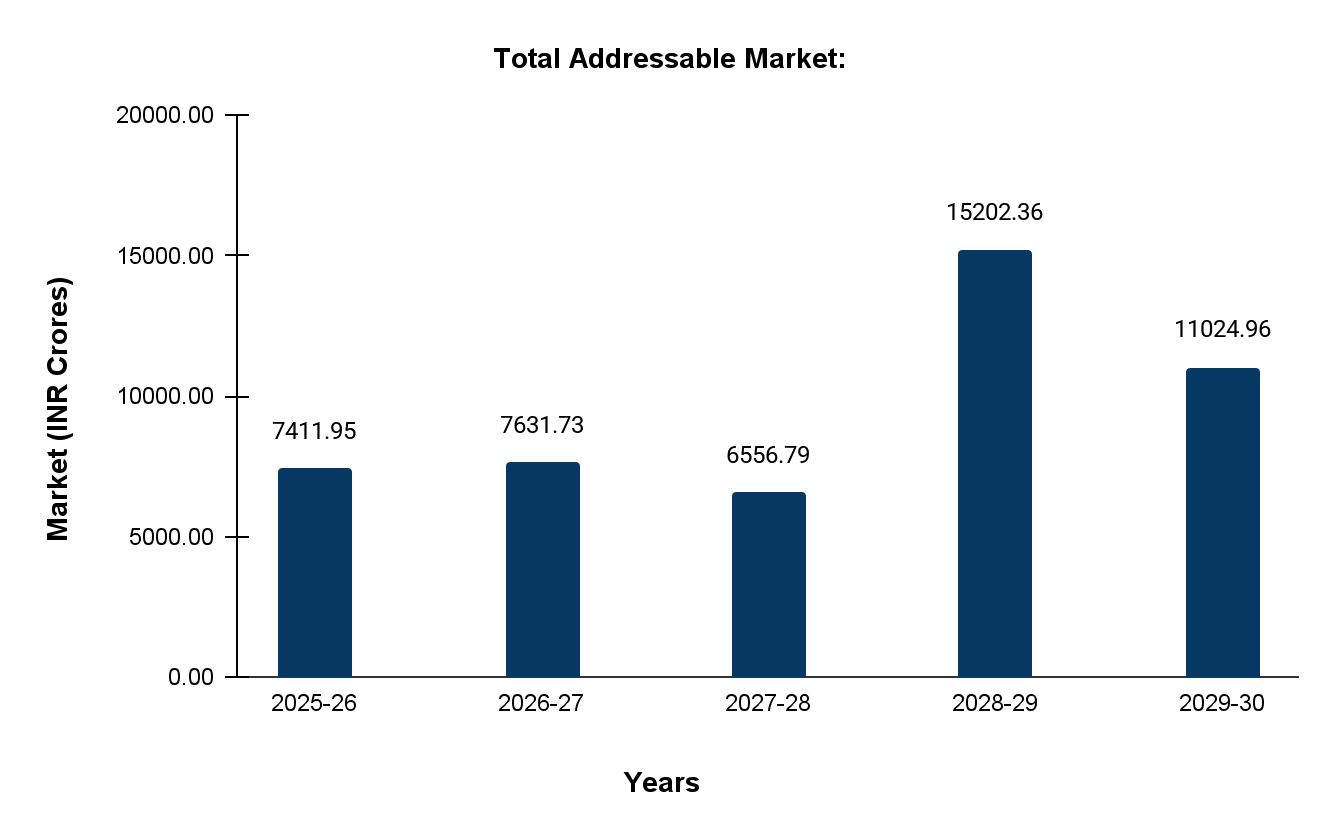 We have estimated the market till 2029-30 as a more practical approach as per the details on the bottom table. The Total Addressable Market has been calculated below for the next 5 years and we expect the progress of the projects in India to increase pace.